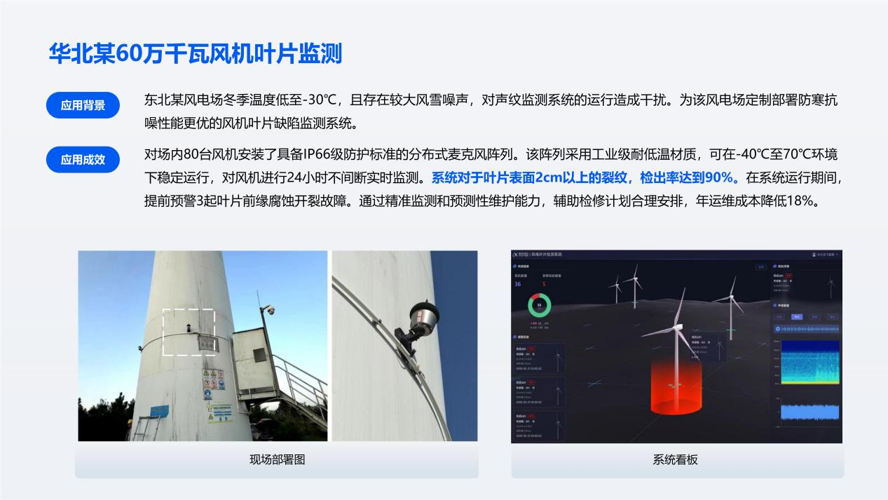 ·(3) 灵活部署策略:新建机组支持叶片制造阶段预埋传感器;在役机组提供无损粘贴式方案,不涉及大部件拆装,部署快捷。